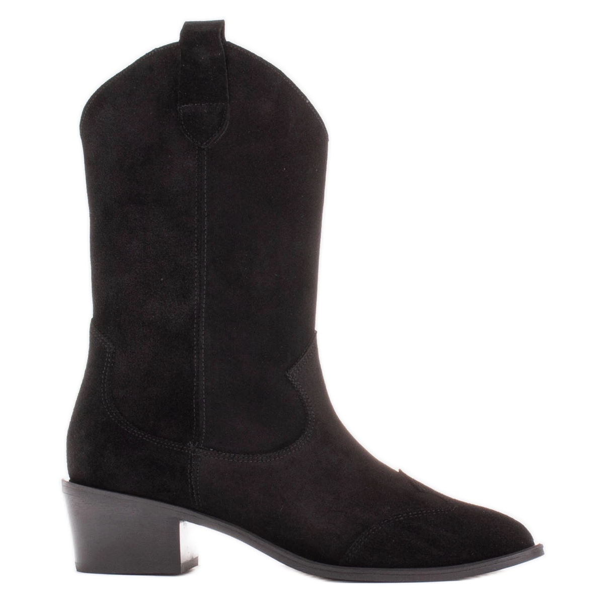 Pantofi Marco - cizme de cowboy negru din piele de căprioară naturală