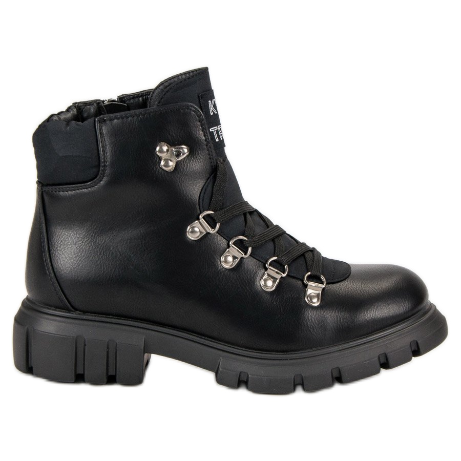 Botinele negre cu șireturi de la Kylie sunt alegerea perfectă pentru fiecare femeie la modă care caută încălțăminte care combină stilul cu confortul. Aceste cizme deasupra gleznei au fost concepute pentru zilele mai reci, datorita izolatiei care asigura confort termic. Realizate din piele ecologica de inalta calitate, arata extrem de elegant si in acelasi timp sunt prietenoase cu mediul.