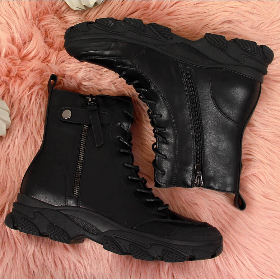 Detalii: Ghete de dama din piele pe platforma neagra Goe II2N4031 negru