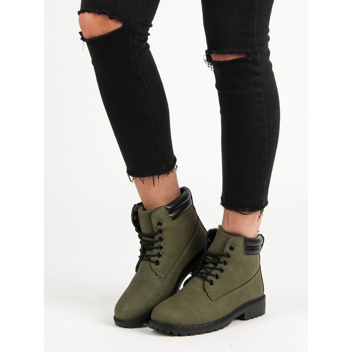 Cizmele de drumeție izolate verde oliv sunt o alegere ideală pentru femeile care caută încălțăminte atât elegantă, cât și funcțională pentru sezonul de toamnă și iarnă. Datorită utilizării materialelor de înaltă calitate, aceste cizme extrem de practice nu sunt doar durabile, ci și rezistente la diferite condiții meteorologice.