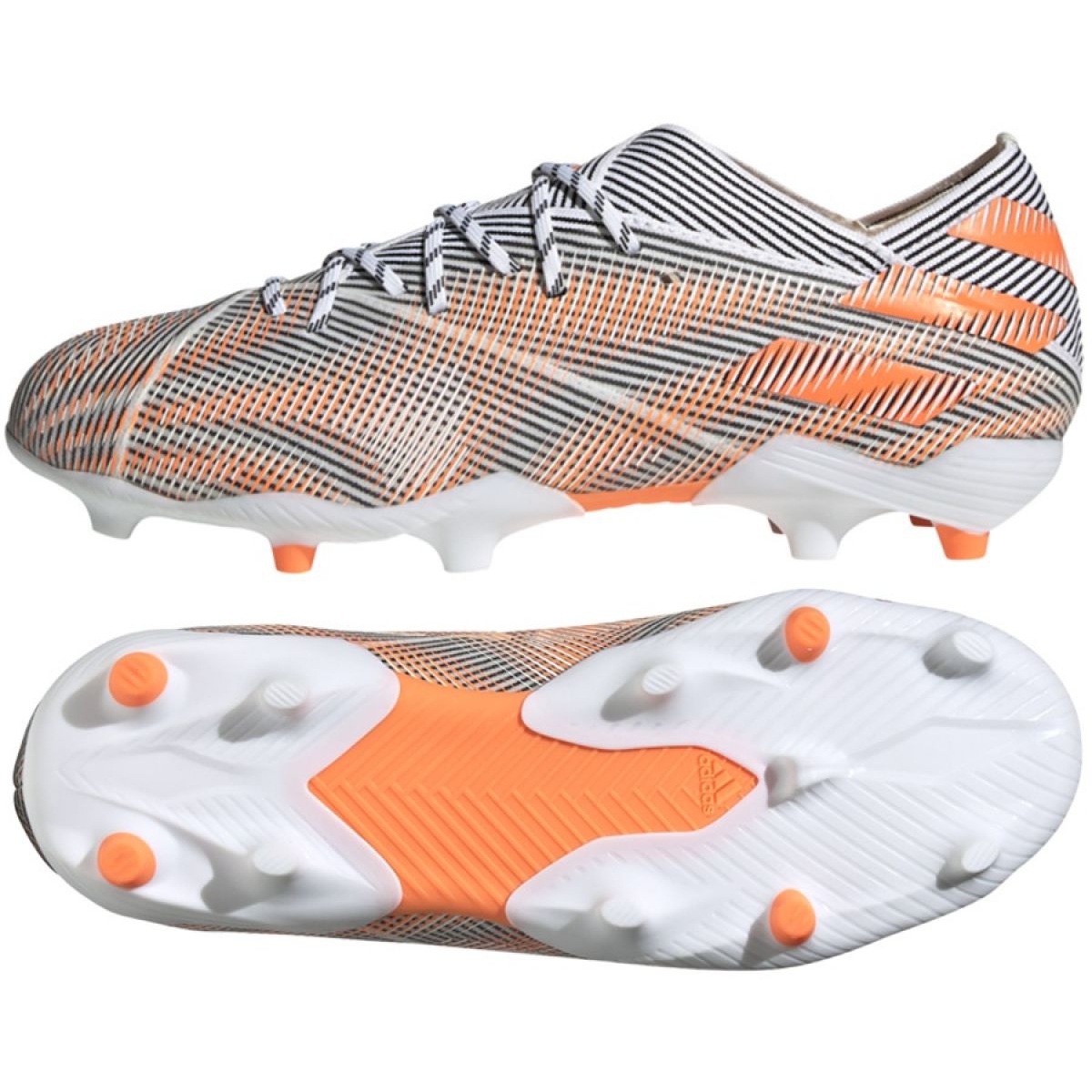 Clemele adidas Nemeziz.1 FG Jr au fost concepute pentru tinerii sportivi. Știfturile din plastic asigură o aderență adecvată pe teren, iar modelul joasă fără șosetă permite mișcare liberă și manevrabilitate ridicată. Greutatea încălțămintei de doar 0,6 kg îi face ușoare și nu restricționează mișcarea.