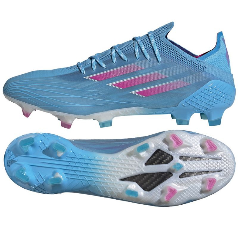 Descoperiți noi posibilități pe teren cu ghetele de fotbal pentru bărbați adidas X Speedflow.1 FG M GW7457 din colecția Meteorite Pack. Aceste crampoane multicolore, în nuanțe de albastru și argintiu, au fost create pentru jocul profesional, oferind o senzație excelentă a mingii datorită căptușei inovatoare Speedskin. Designul său montat cu o limbă extensibilă în patru direcții garantează confort și flexibilitate, ceea ce contribuie la un control și mai bun asupra mișcării.