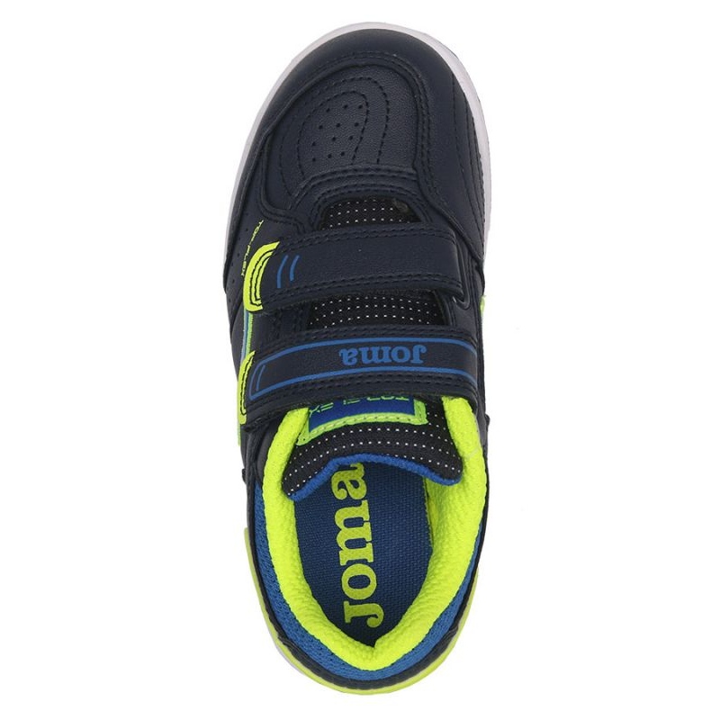 Pantofii de fotbal Joma Top Flex 2303 Tp Jr TPJS2303INV sunt o alegere excelentă pentru jucătorii tineri care doresc să se bucure de joc pe suprafețe interioare. Având un design albastru atractiv, acești pantofi de fotbal de interior decoltați nu numai că arată bine, dar oferă și o serie de caracteristici care sporesc confortul și performanța pe teren.