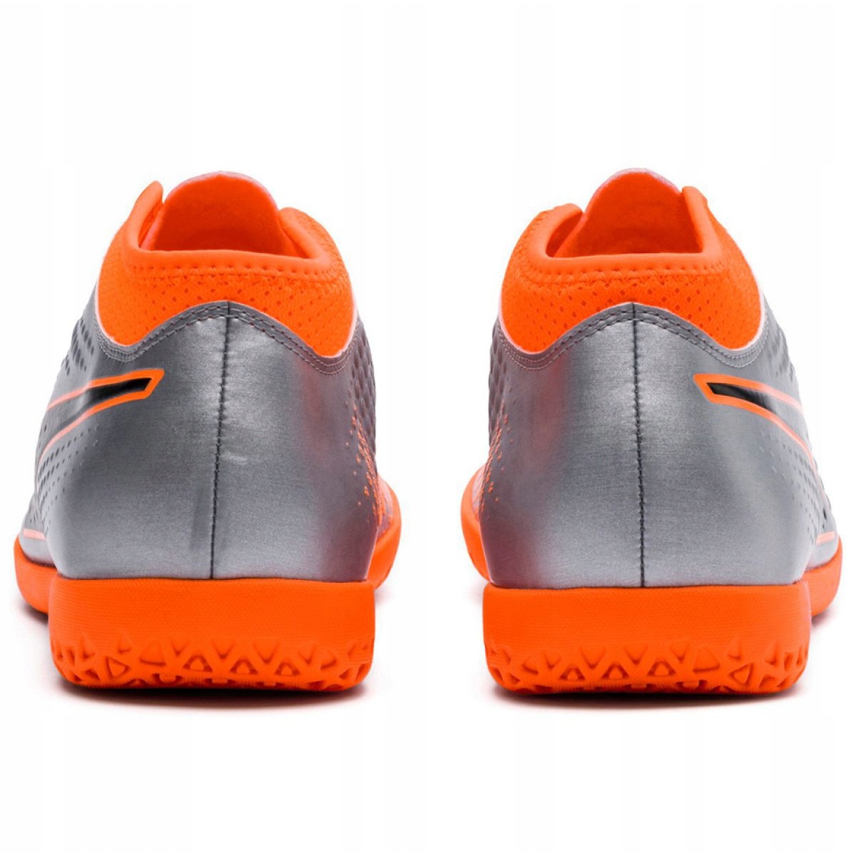 Pantofii in nuante de portocaliu si argintiu sunt alegerea perfecta pentru cei care vor sa iasa in evidenta pe teren. Designul lor modern face ca fiecare pas să fie încrezător și dinamic.