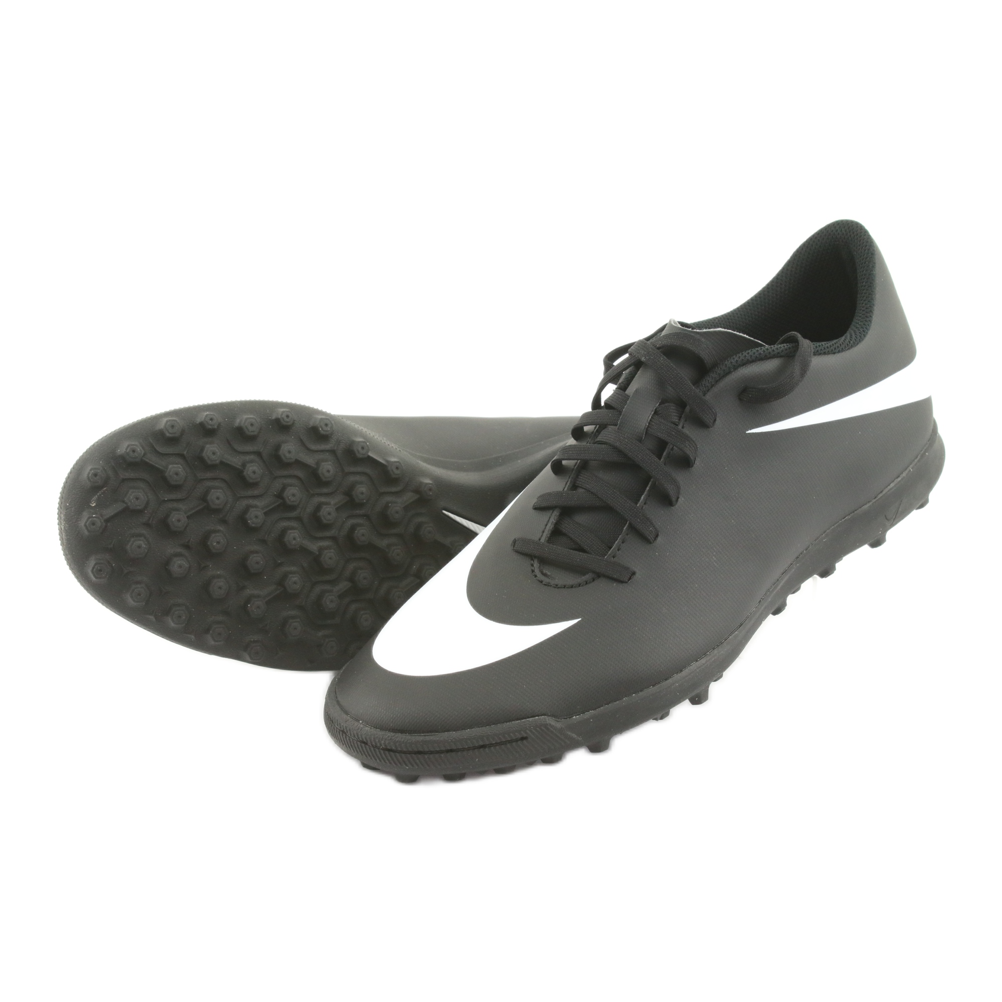 Nike BravataX II TF sunt perfecte pentru a juca pe suprafețe artificiale, ceea ce le face o alegere ideală pentru terenuri și pavaj. Finisajul negru face ca modelul să fie universal și ușor de asortat cu diverse ținute de fotbal.
