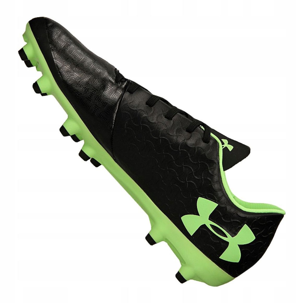 Știfturile sunt din plastic, ceea ce garantează o bună aderență pe suprafețele naturale, iar închiderea cu șireturi permite o potrivire perfectă pe picior. Modelul 3000115-002 este echipat suplimentar cu tehnologii moderne Under Armour care măresc stabilitatea și controlul mingii.