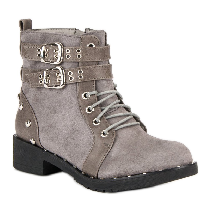 Va prezentam cizme de muncitor Clowse la moda intr-o culoare gri eleganta, care incanta atat prin stil cat si prin functionalitate. Aceste botine de damă cu partea superioară până deasupra gleznei sunt o alegere perfectă pentru zilele de toamnă și iarnă, combinând confortul și designul la modă.