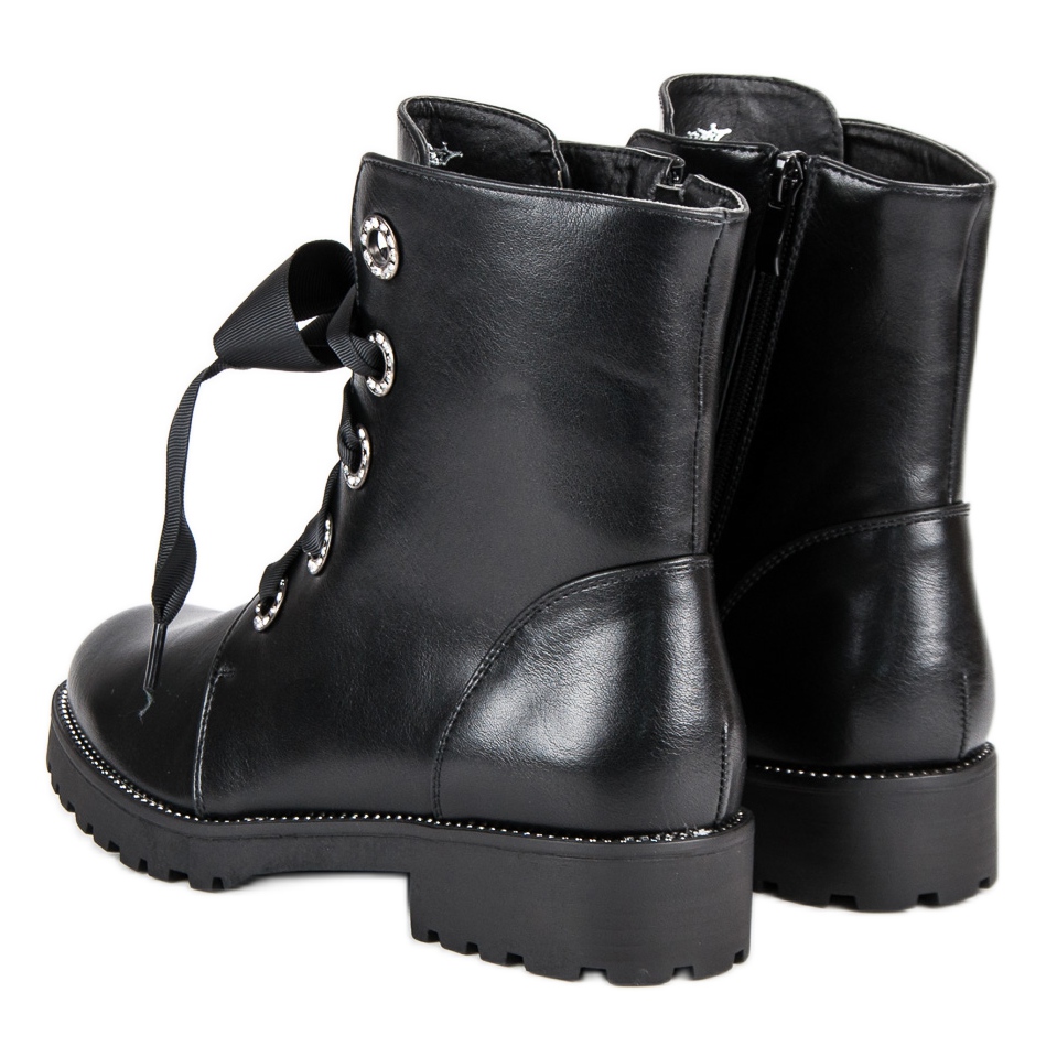 Descoperiți stilul și confortul unic cu botinele de damă workery Queentina într-o culoare neagră elegantă. Acești pantofi plati clasici cu înălțimea de 4 cm se potrivesc perfect în tendința modei casual, iar versatilitatea lor îi face o completare perfectă pentru multe stiluri de zi cu zi.