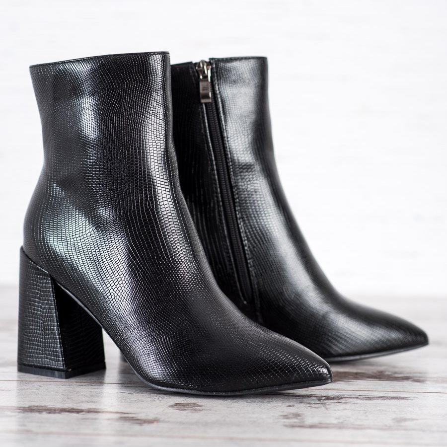 Izolația interioară plăcută asigură confort termic chiar și în zilele mai reci, iar tocul bloc înalt, de 9 cm, adaugă silueta subțire și prelungește optic picioarele. Fermoarul ușurează încălcarea și scoaterea, ceea ce face ca cizmele să fie extrem de practice. Talpa netedă, sintetică și călcâiul rigid oferă stabilitate și confort, ceea ce este extrem de important pentru utilizarea de zi cu zi.