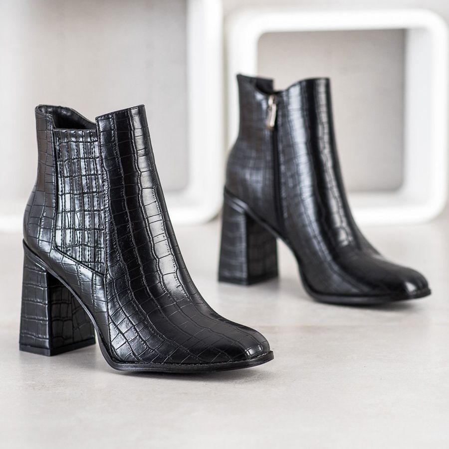 Fabricate din piele ecologică de înaltă calitate, acestea se caracterizează printr-o culoare neagră atemporală care se potrivește perfect cu o varietate de stiluri - de la casual până la seară. Datorită vârfului rotunjit, cizmele nu numai că arată elegant, dar asigură și confortul la purtare, ceea ce vă va permite să vă bucurați de ele toată ziua.
