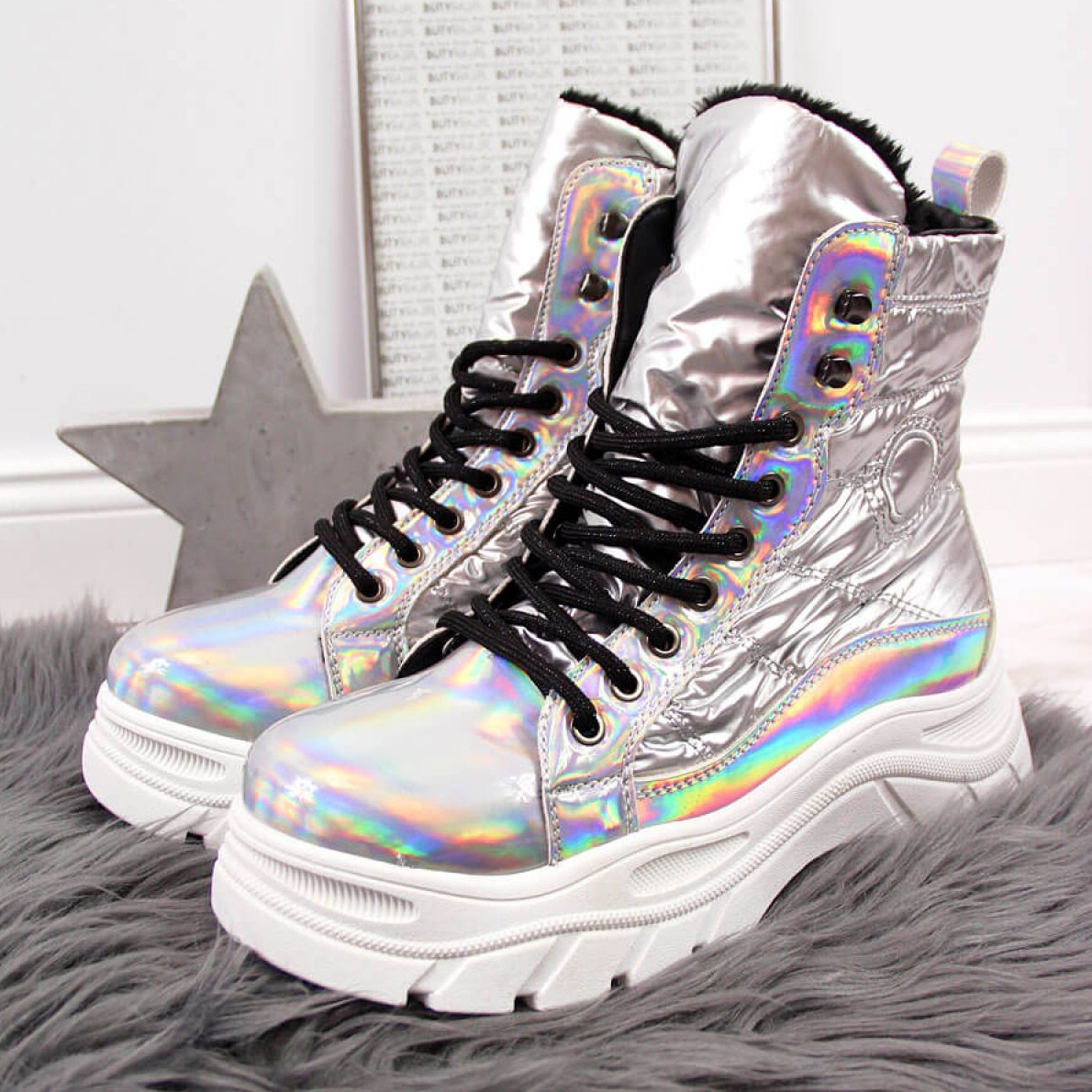 Cizmele de zapada cu platforma holo Vinceza W JAN47B argintii sunt alegerea perfecta pentru femeile care doresc sa combine confortul cu stilul la moda. Cu un design inalt si izolatie excelenta, aceste cizme sunt facute pentru zilele reci, oferind confort optim si protectie impotriva aerului rece.