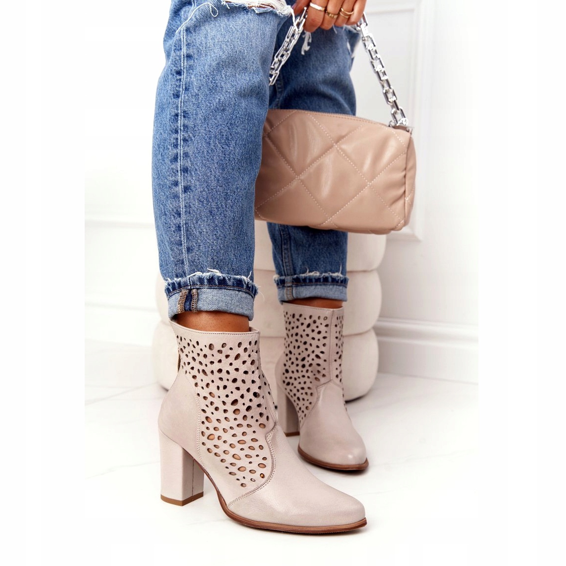 Exquisite Exquisite Ghete din piele ajurată pe un post rafinat 1219 Cappuccino bej