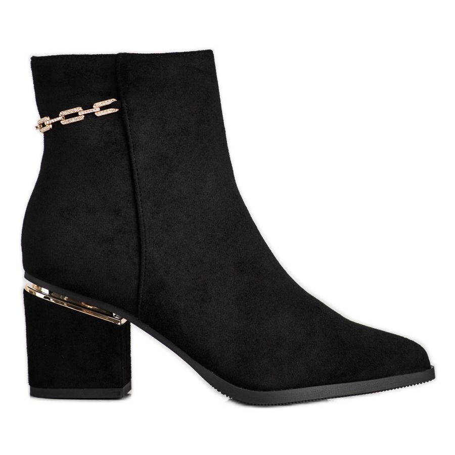 Descoperiți eleganța și confortul în orice situație cu botinele Seastar de culoare neagră. Aceste botine unice din piele intoarsa cu un lant decorativ sunt o alegere perfecta pentru femeile care cauta o combinatie de stil si functionalitate.