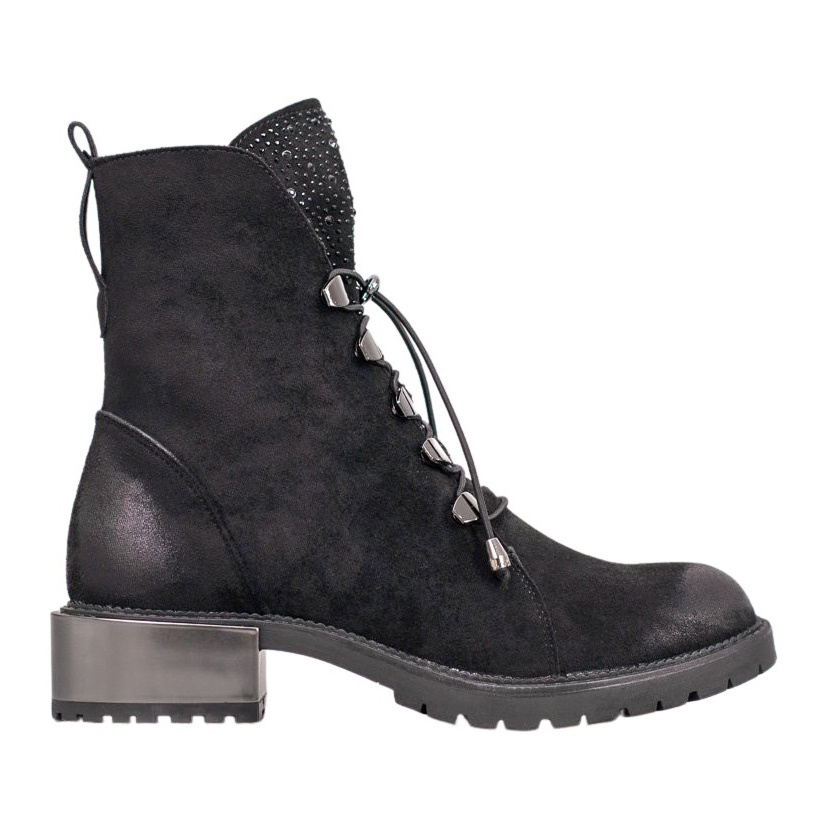 Cizmele se remarcă prin șireturi înalte, care nu numai că le conferă un aspect elegant, dar asigură și o potrivire stabilă pe picior. Datorită tălpii călcate din material sintetic, vei fi sigur că nu vei fi în pericol de alunecare în condiții meteorologice dificile.