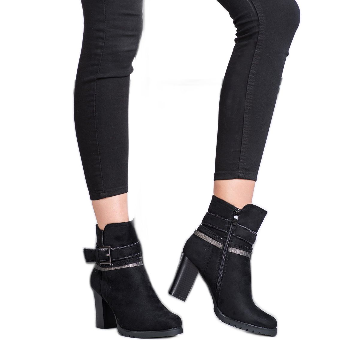 Queentina Queentina Ghete din piele de căprioară elegante negru argint