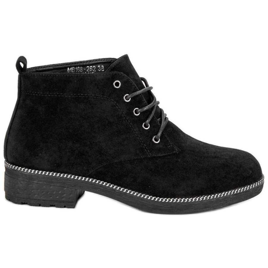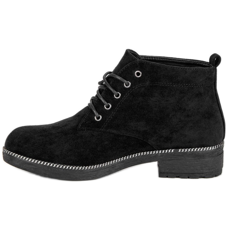 **Botine Nio Nio din piele intoarsa cu siret, negre**