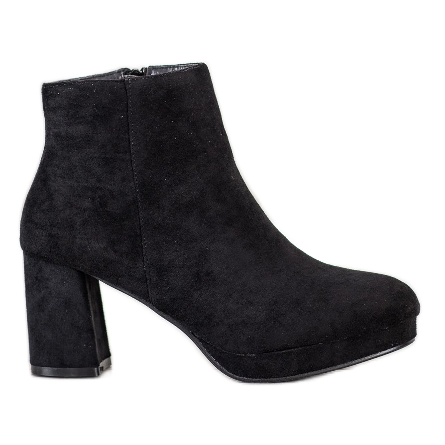 Botinele de piele intoarsa cu toc inalt de la producatorul SHELOVET sunt completarea perfecta in garderoba oricarei femei. Acesti pantofi eleganti si casual, intr-o culoare clasica neagra, sunt perfecti atat pentru utilizarea de zi cu zi, cat si pentru ocazii speciale. Fabricate din piele de piele ecologică de înaltă calitate, oferă nu doar un aspect elegant, ci și confort la purtare.