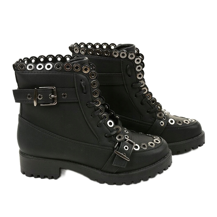 Închiderea cu șireturi permite ajustarea individuală, ceea ce îl face confortabil de purtat. In plus, platforma inalta de 4 cm alungeste optic picioarele, adaugandu-le lejeritate. Botine negre cu cataramă 1370-1 se potrivesc perfect cu diverse stiluri - de la combinații casual până la combinații mai elegante.
