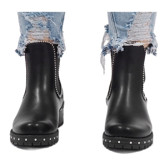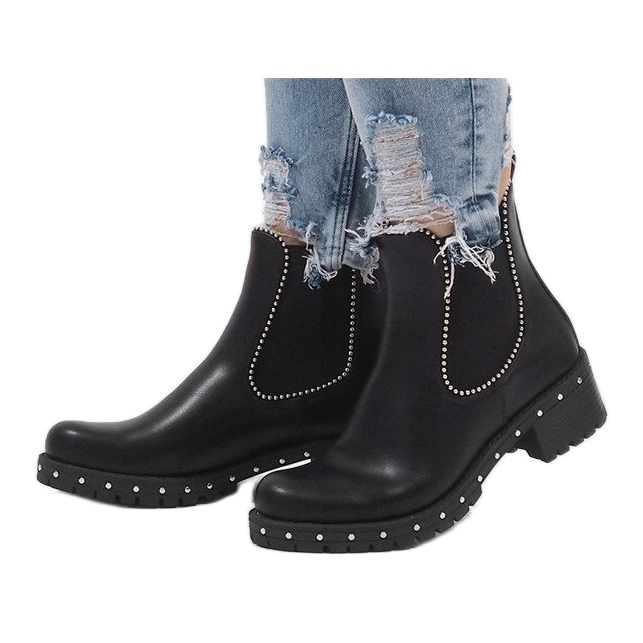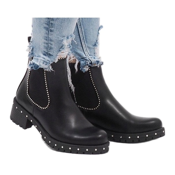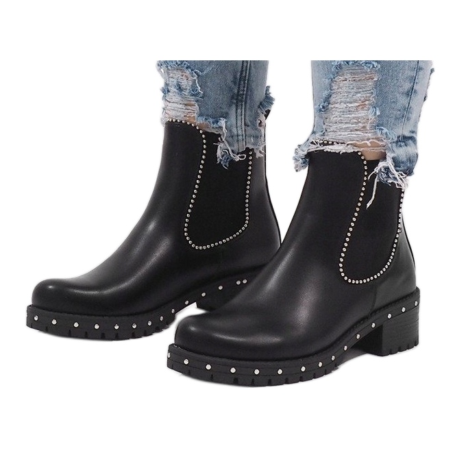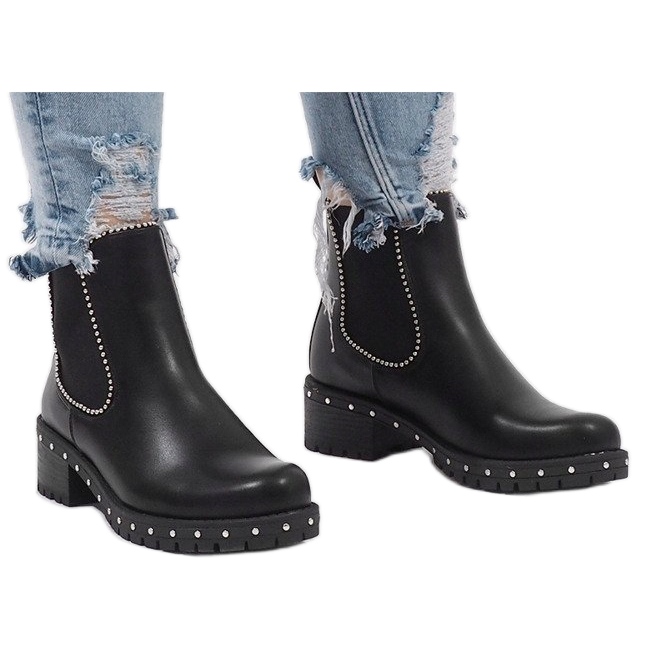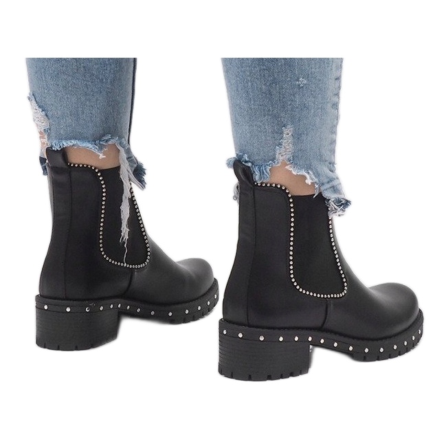 Botinele negre izolate cu știfturi 17031-25 sunt o alegere ideală pentru femeile care doresc să-și exprime individualitatea și stilul unic. Acești pantofi unici combină un caracter rock cu tendințele moderne, remarcate prin strasuri și crampoane originale. Datorită culorii negre clasice, se potrivesc perfect cu o varietate de stiluri, de la casual la mai elegante.