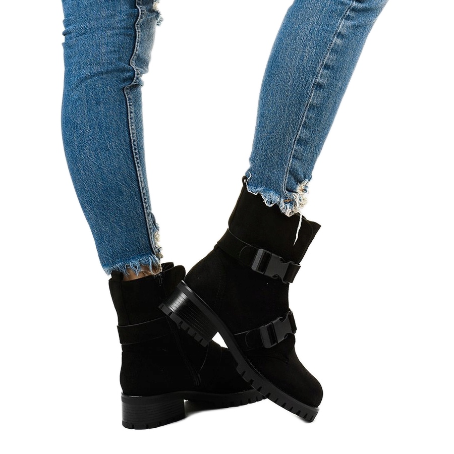Trăsătura lor caracteristică sunt curelele atractive care înconjoară partea superioară, finisate cu o cataramă cu snap, care le adaugă expresivitate. Cizmele sunt montate pe o talpă solidă, de tractor, care asigură stabilitate și aderență bună. Datorită înălțimii gleznelor (21 cm) și tocului plat (4,5 cm), aceste cizme izolate garantează confort chiar și în timpul plimbărilor mai lungi.