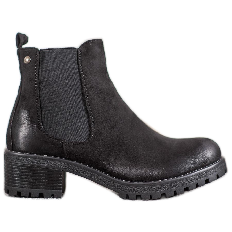 Partea superioară până la gleznă este realizată cu grijă din piele de căprioară ecologică, ceea ce adaugă un caracter modern. Inserțiile elastice din cauciuc îl fac ușor de pus și adaptat la picior, ceea ce va fi cu siguranță apreciat de fiecare femeie care prețuiește practicitatea. Un vârf rotund și un călcâi încorporat, rigid, completează aspectul, oferind suport adecvat.