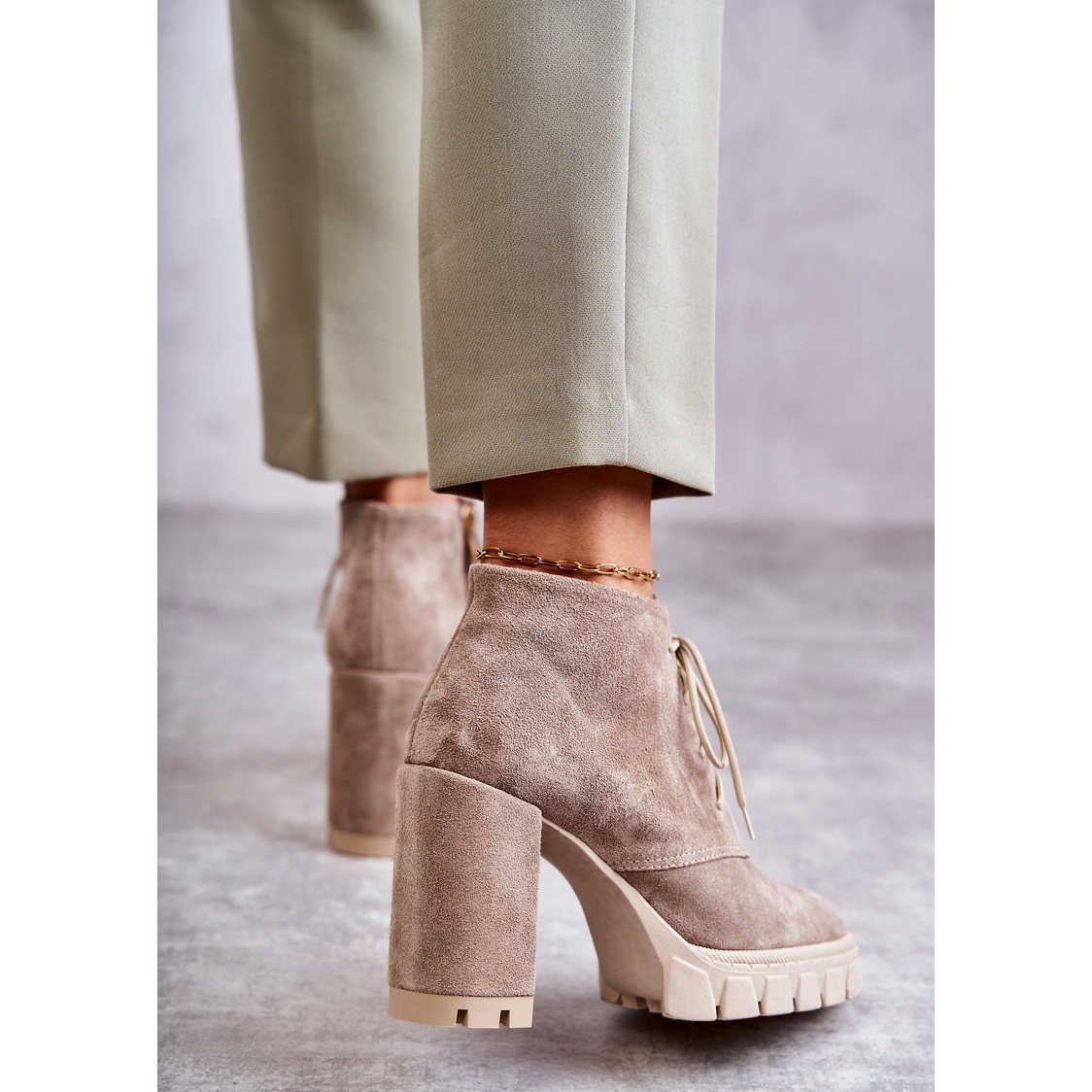 Detalii: Ghete la modă din piele intoarsa cu siret Bej Selma
