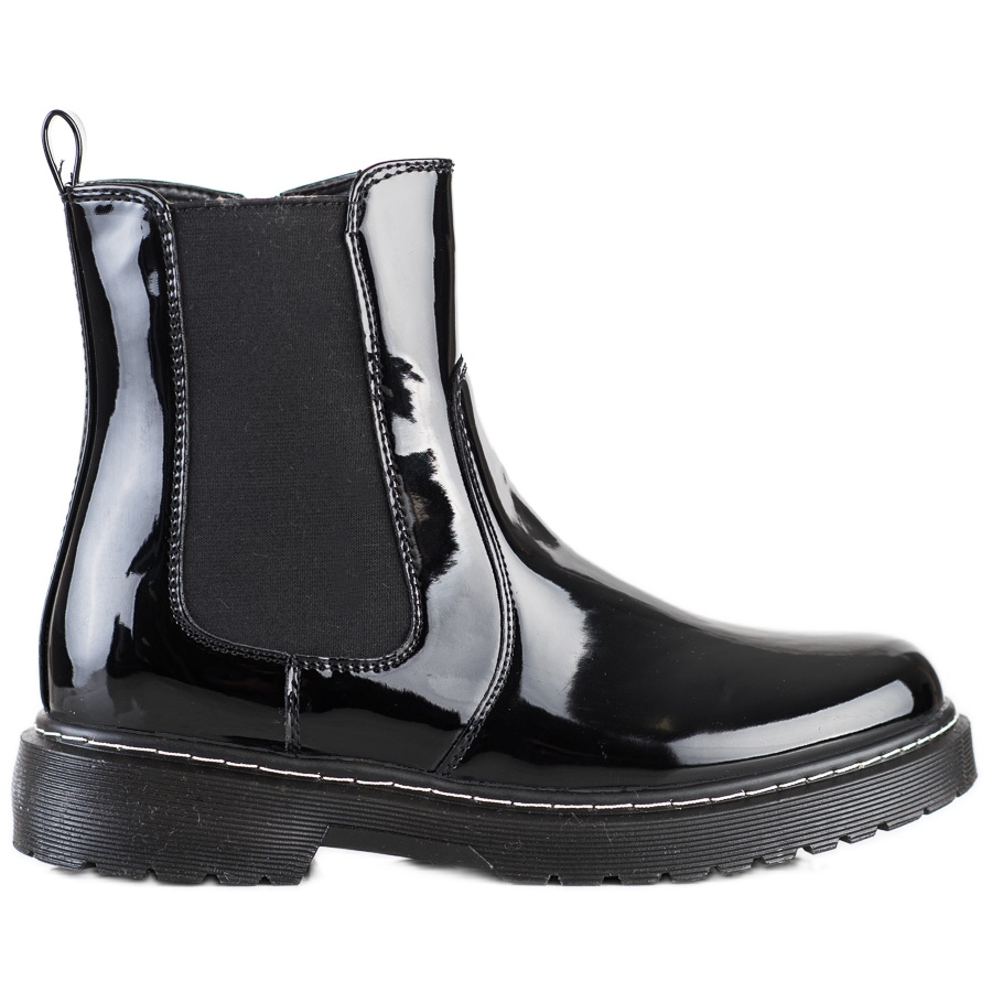 SHELOVET SHELOVET Ghete lăcuite cu blană negru