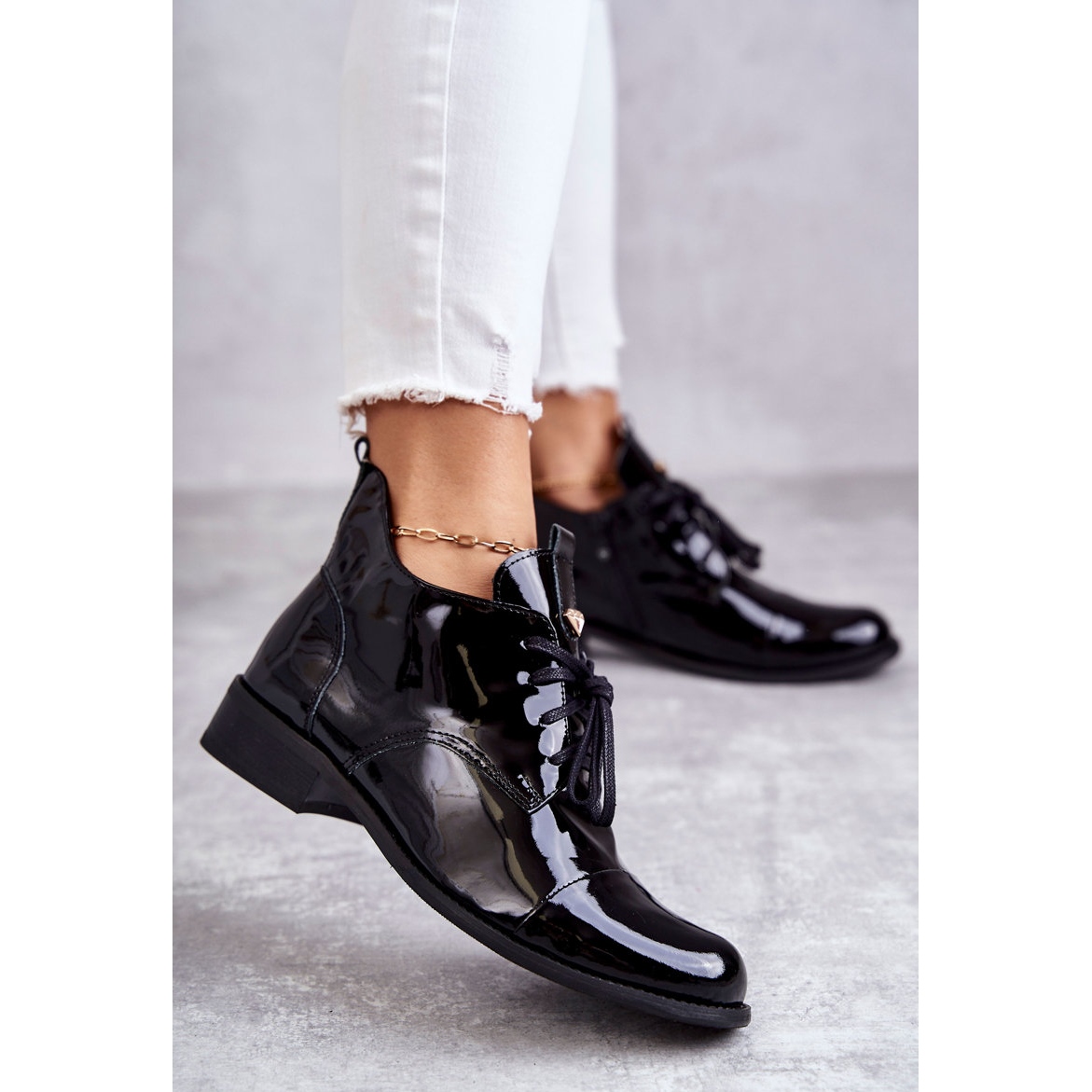 Detalii: Ghete Lăcuite Ghete Cu dantelă Nicole 2781 Negru