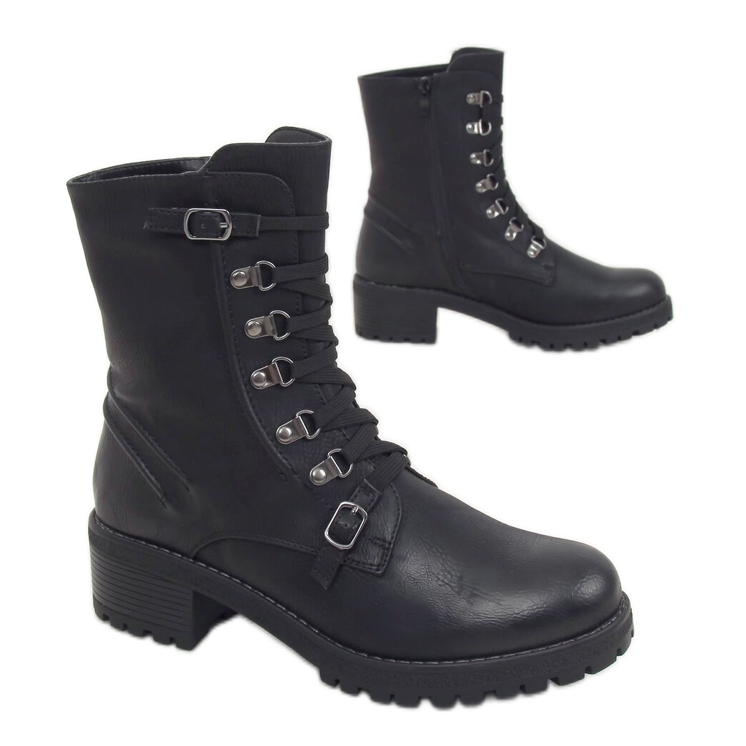 Descoperiți stilul și confortul cu pantofii militari 361 Black! Aceste botine de damă elegante combină un aspect la modă și caracterul practic, perfecte pentru utilizarea de zi cu zi. Se caracterizeaza printr-un toc lat, de 4,5 cm inaltime, si o talpa capcanata, care nu numai ca le adauga un accent modernist, dar le asigura si o aderenta adecvata pe diverse suprafete.
