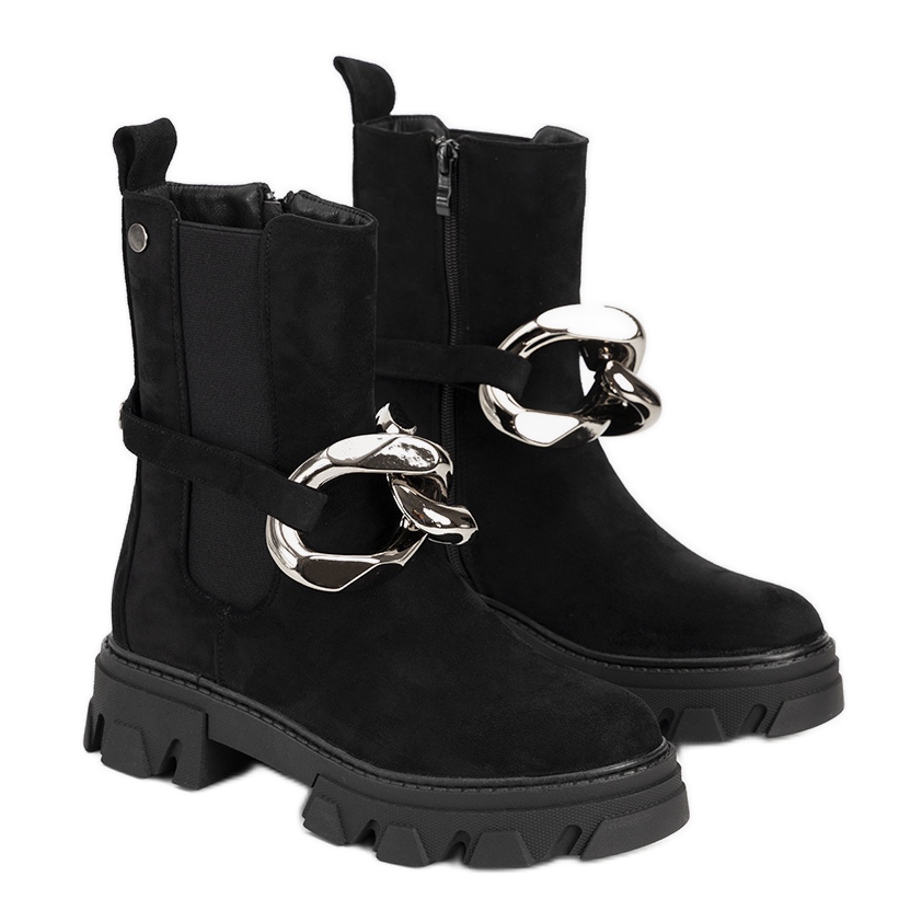 Detalii: Ghete negre cu lanț de aur de la Gareau negru
