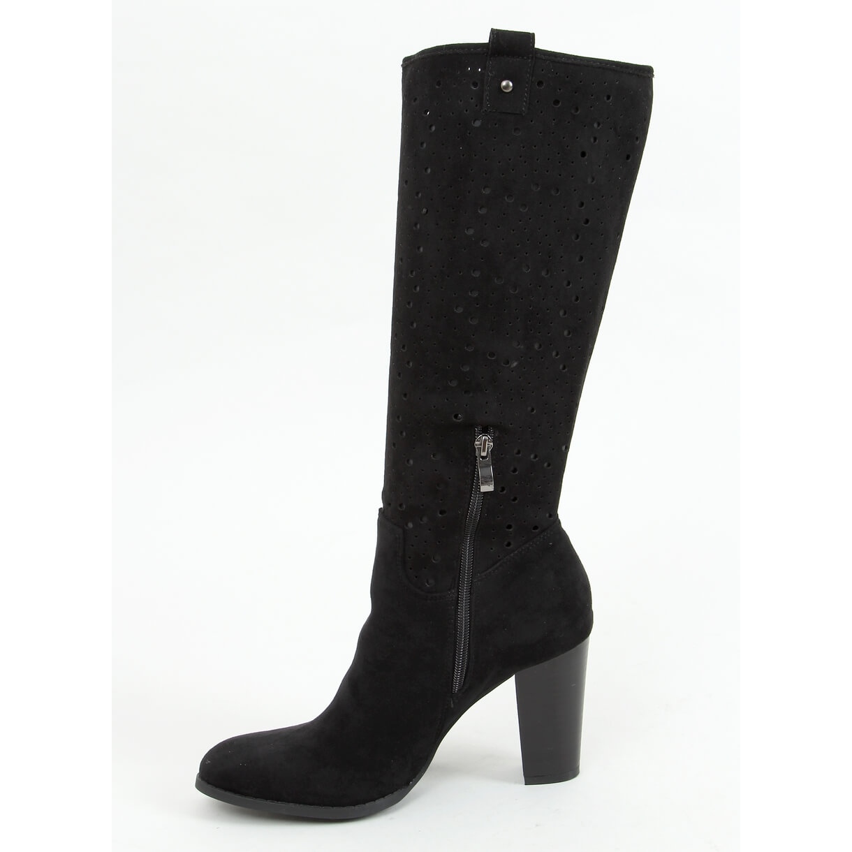 RT89956 Cizmele negre ajurate cu toc înalt sunt o alegere ideală pentru femeile care apreciază atât stilul, cât și confortul. Confectionate din piele intoarsa ecologica de inalta calitate, aceste cizme de dama incanta prin modelul lor subtil ajurat, care le confera un caracter unic. Stâlpul stabil de 9 cm înălțime oferă echilibrul perfect între eleganță și confort, ceea ce le face o alegere excelentă pentru utilizarea de zi cu zi.