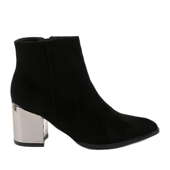 Botinele negre BM Astihus cu toc înalt sunt o alegere perfectă pentru fiecare femeie care apreciază eleganța și confortul. Realizați din piele de căprioară ecologică de înaltă calitate, acești pantofi eleganti combină designul la modă și funcționalitatea. Varful ascutit adauga eleganta, iar tocul decorativ de 7,5 cm inaltime asigura stabilitate si confort de purtare pentru o perioada indelungata.