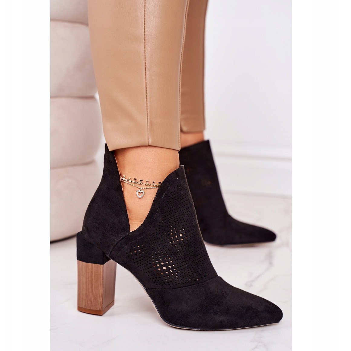 Detalii: Ghete negre Michelle ajurate pe un post negru