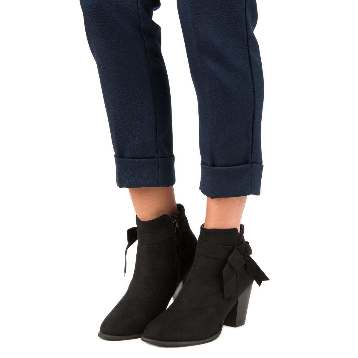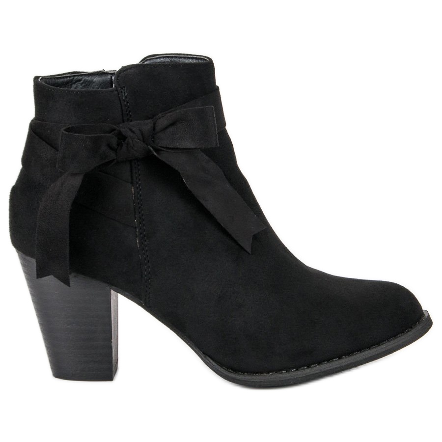 Cizmele sunt realizate din piele intoarsa ecologica de inalta calitate, care asigura durabilitate si aspect estetic exceptionali. O funda fermecătoare plasată pe partea superioară le conferă un caracter unic, făcându-le complementul perfect pentru orice stil. Culoarea lor elegantă neagră le face să se potrivească cu aproape orice - de la seturi casual până la ținute de seară.