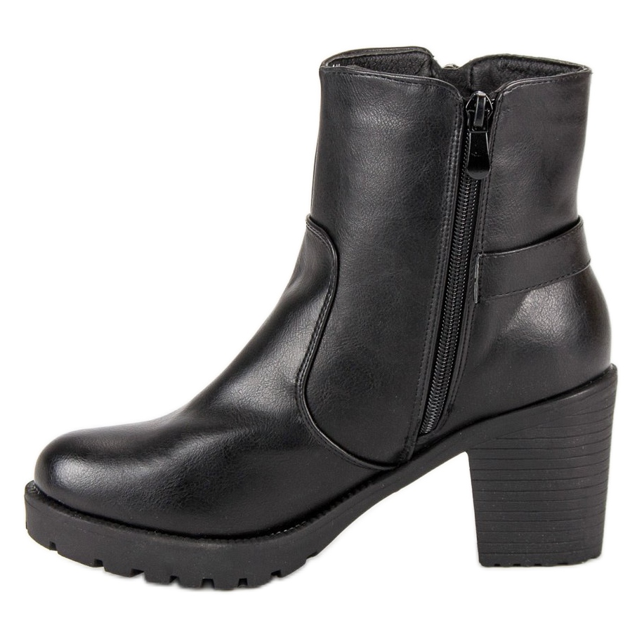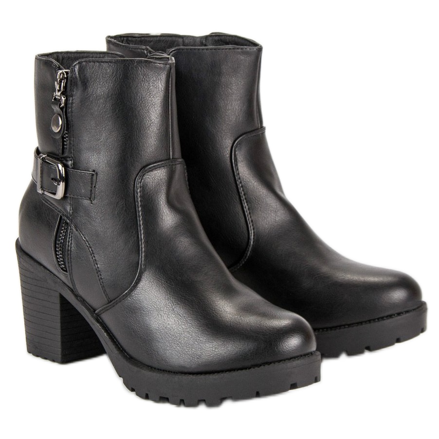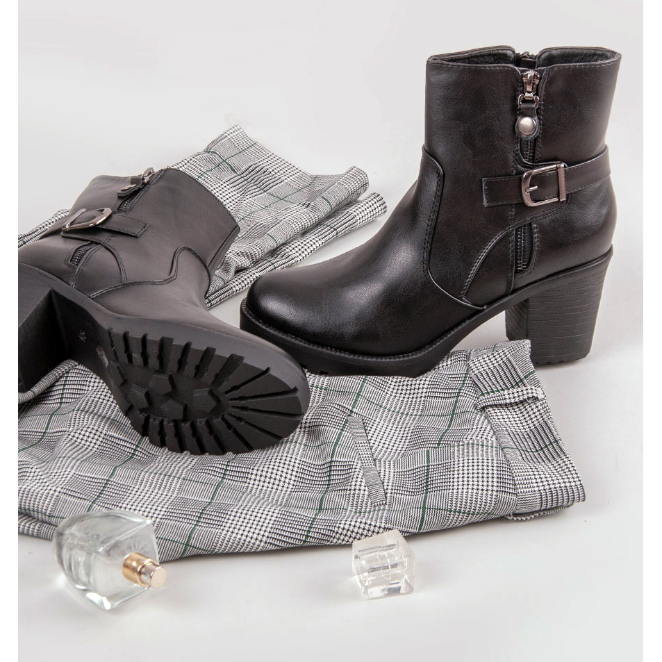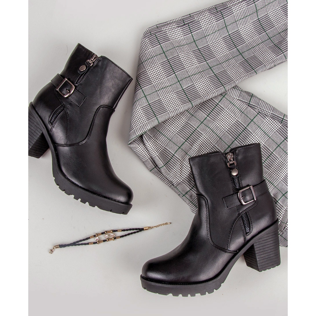 Botinele până la glezne se caracterizează printr-un toc subtil, dar impresionant, în formă de bloc, care are 8 cm înălțime. Datorita platformei usoare de 2 cm inaltime, confortul la mers este la cel mai inalt nivel. Două fermoare și o cataramă decorativă argintie le conferă un caracter prădător, făcându-le mai ușor de pus și scos.
