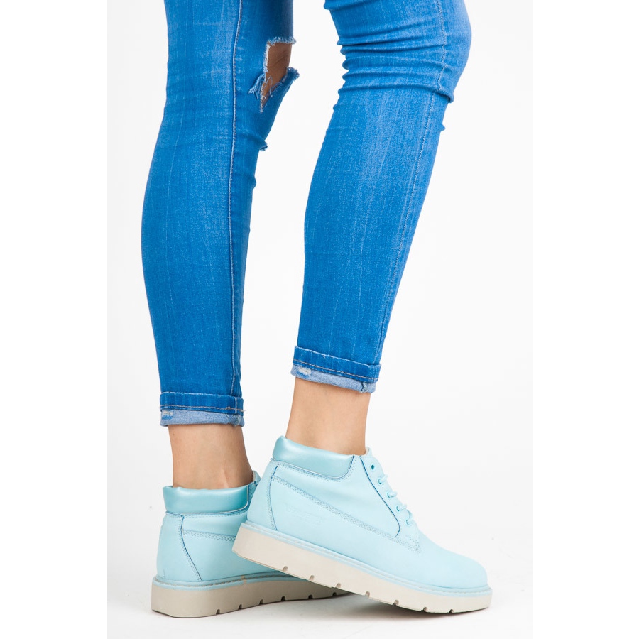 Botinele cu platformă Vices sunt alegerea perfectă pentru femeile care apreciază confortul și stilul casual. Acești pantofi frumoși, de culoare albastru deschis, sunt confecționați din piele ecologică, ceea ce îi face nu doar la modă, ci și ecologic. O platformă mică de 3 cm înălțime adaugă ceva înălțime, asigurând în același timp stabilitatea la mers.
