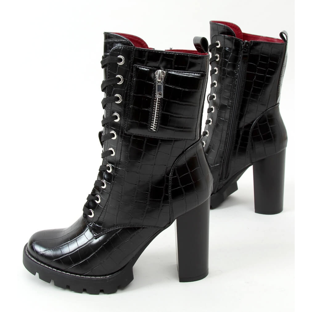 Tocul înalt, de 10 centimetri, adaugă o siluetă subțire și este stabil în același timp, ceea ce face ca fiecare moment în acești pantofi să fie o plăcere. O textură fenomenală în relief care imită pielea de șarpe și un buzunar la modă pe partea superioară atrag atenția și adaugă un caracter prădător întregului.