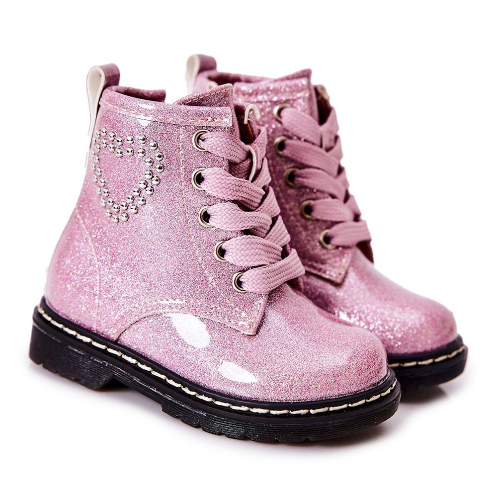 Descoperă cizme unice pentru copii WT1 într-o culoare roz neobișnuită, care va încânta orice mică fashionistă! Aceste botine din piele lăcuită se caracterizează printr-un efect strălucitor și o inimă fermecătoare decorată cu știfturi, care le adaugă un stil și un farmec extraordinar. Datorită șireturii clasice, acestea se potrivesc perfect piciorului, iar fermoarul cusut în lateral face să le pună ușor și rapid.