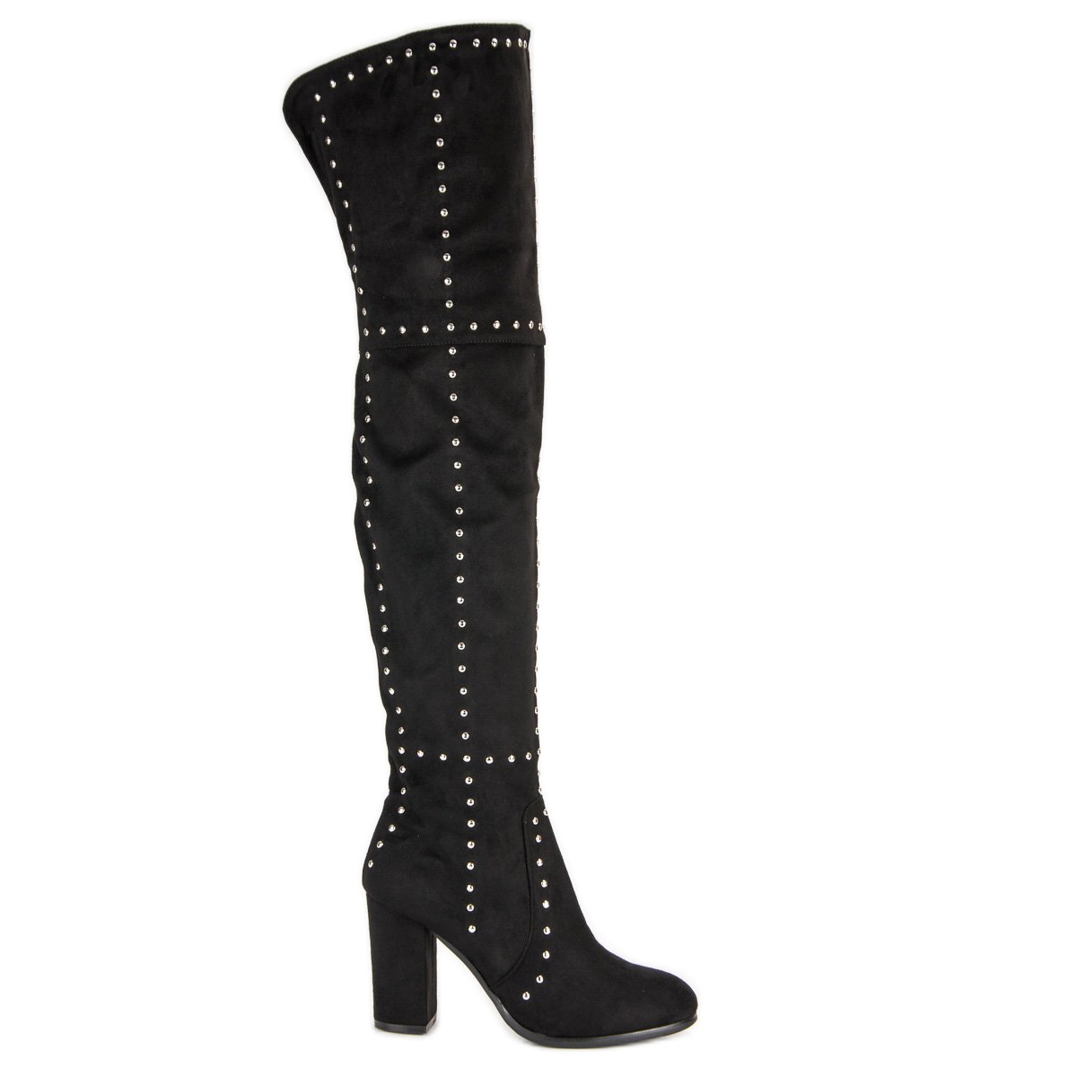 Prinși cu fermoar practic, acești pantofi impresionanți asigură o purtare ușoară și o potrivire perfectă la picior. Partea superioară înaltă, ajungând deasupra genunchiului, protejează eficient împotriva frigului, iar tocul stabil de 9 cm adaugă încredere la fiecare pas. Talpa netedă, sintetică, garantează durabilitatea și confortul la purtare, indiferent de ocazie.