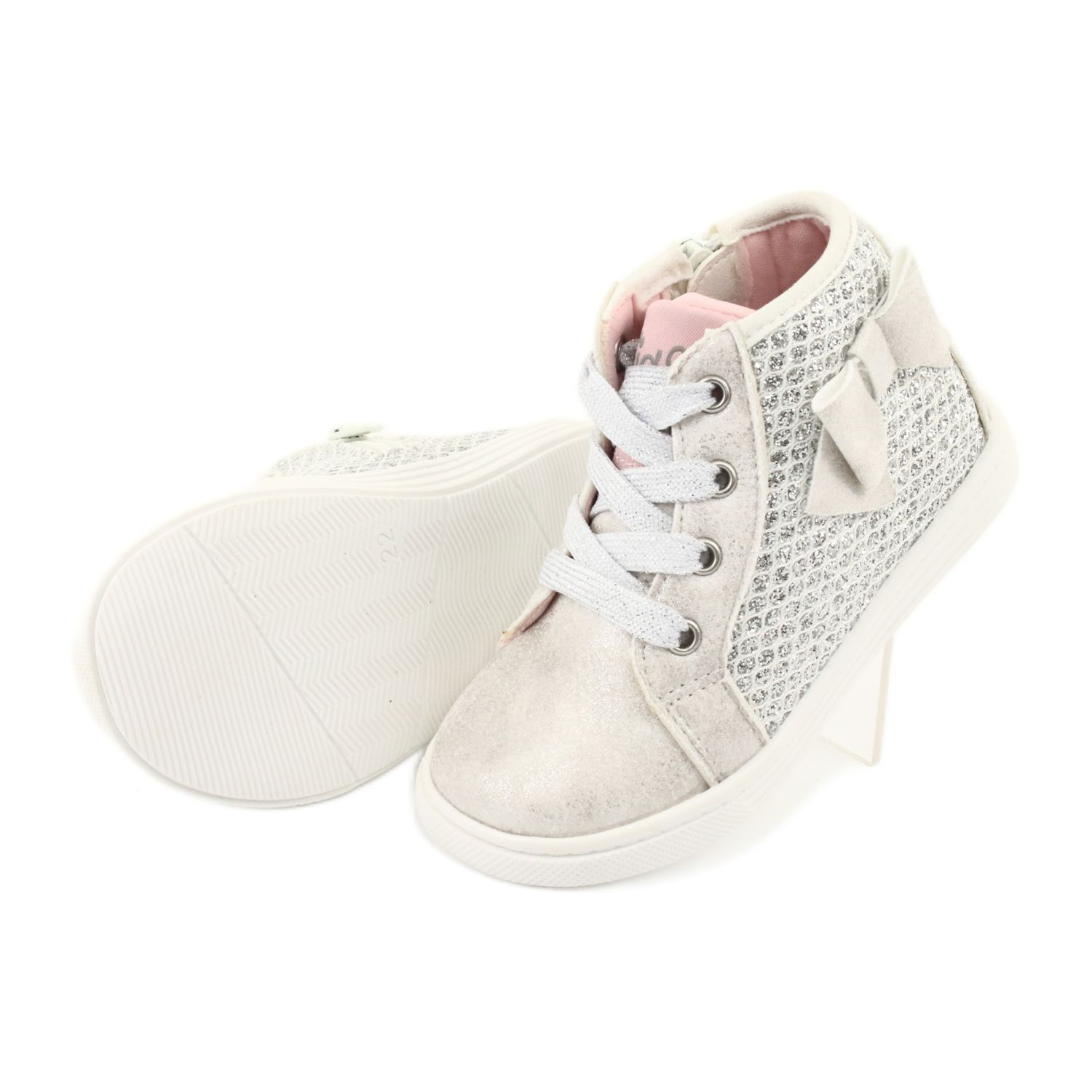 Interiorul lor este realizat din material textil moale, iar inserția din piele asigură confort atunci când sunt purtate. Culorile perle impresionante, îmbogățite cu accente de sclipici și o fundiță fermecătoare vor atrage atenția fiecărui copil și îl vor face să se simtă speciali.