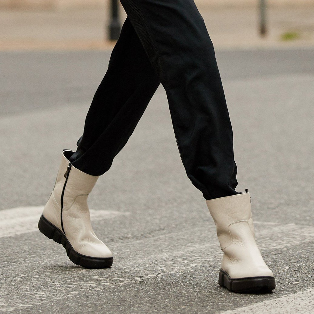 Din punct de vedere estetic, botinele albe sunt universale, asortându-se atât cu blugii casual, cât și cu o garderobă mai sportivă. Nu au un model dominant, ceea ce le face ușor de coafat cu o varietate de haine. Pantofii sunt prinși cu fermoar, ceea ce îi face ușor de pus și scos.