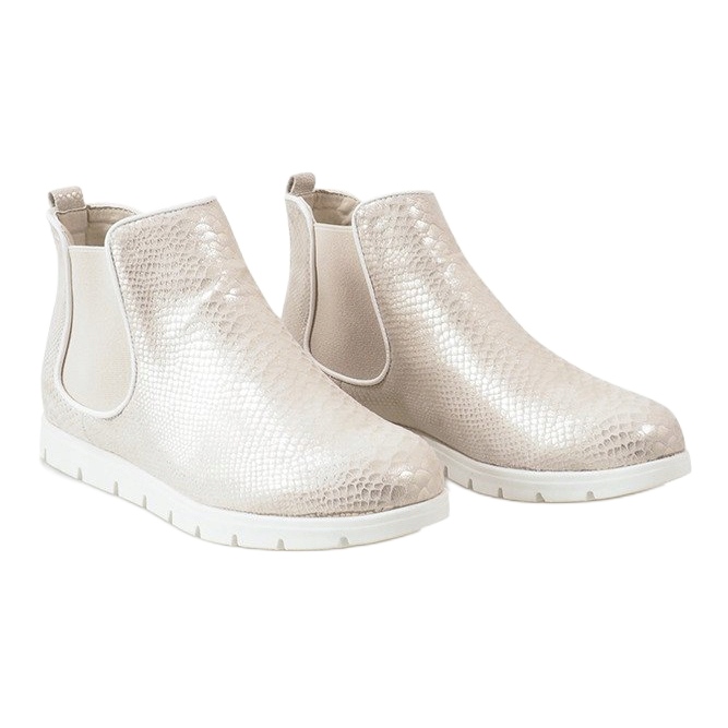 Descoperă eleganța și originalitatea cu cizmele sport aurii 1602 în nuanțe de bej și argintiu! Aceste cizme Chelsea extrem de stilate, perfecte pentru femeile care doresc să iasă în evidență din mulțime, îmbină perfect designul la modă cu confortul la purtare.