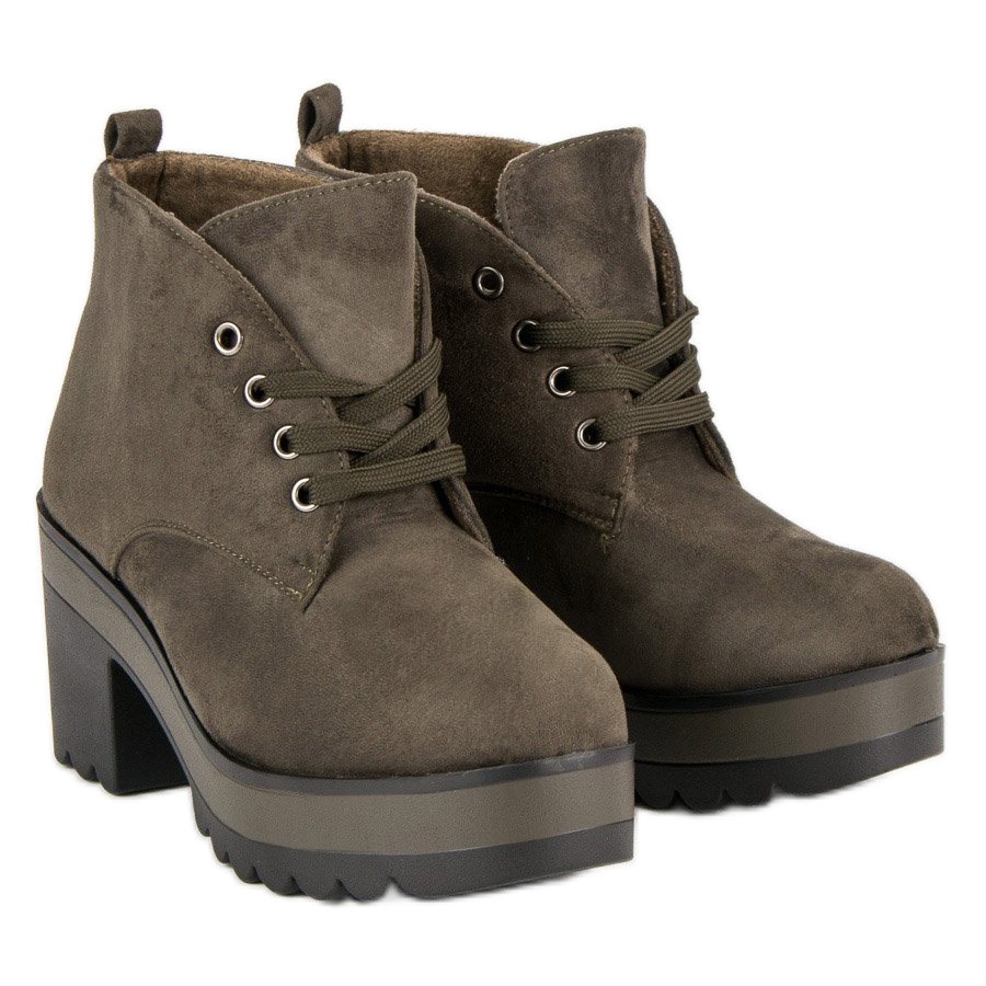 Descoperiți botine verzi unice cu toc înalt, care sunt alegerea perfectă pentru femeile încrezătoare în sine care doresc să iasă în evidență din mulțime. Acești pantofi eleganți vor completa perfect orice stil - atât în fiecare zi, cât și pentru ocazii speciale. Sunt confectionate din piele intoarsa ecologica de inalta calitate, ceea ce le face sa arate impecabil si placute la atingere.