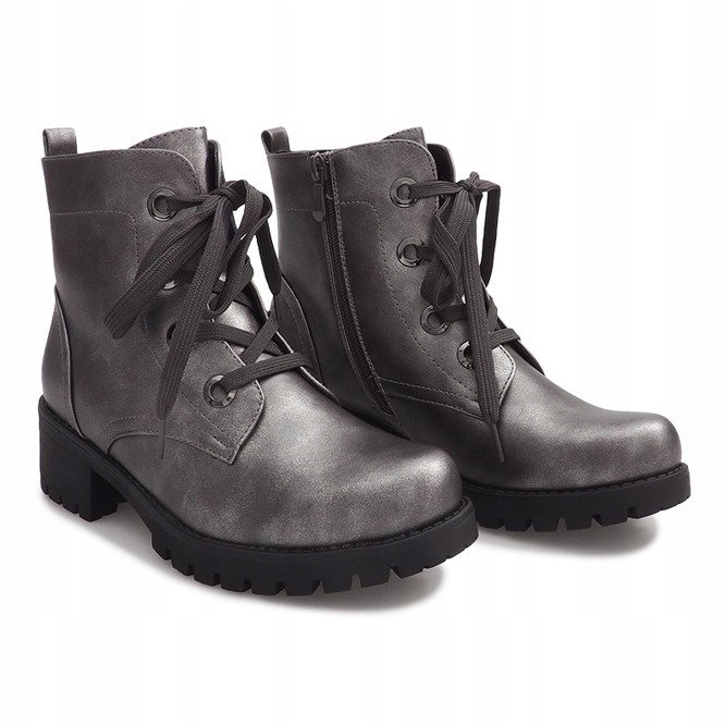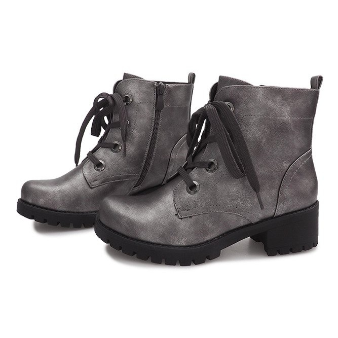 Cizmele au o inchidere clasica cu siret si un fermoar suplimentar, ceea ce le face mai usor de incaltat si ajustat la picior. Înălțimea tocului de 4,5 cm, combinată cu forma bloc, asigură confortul utilizării, iar finisajul gleznei face ca pantofii nu numai să adauge eleganță, ci și să protejeze picioarele împotriva frigului și umezelii.