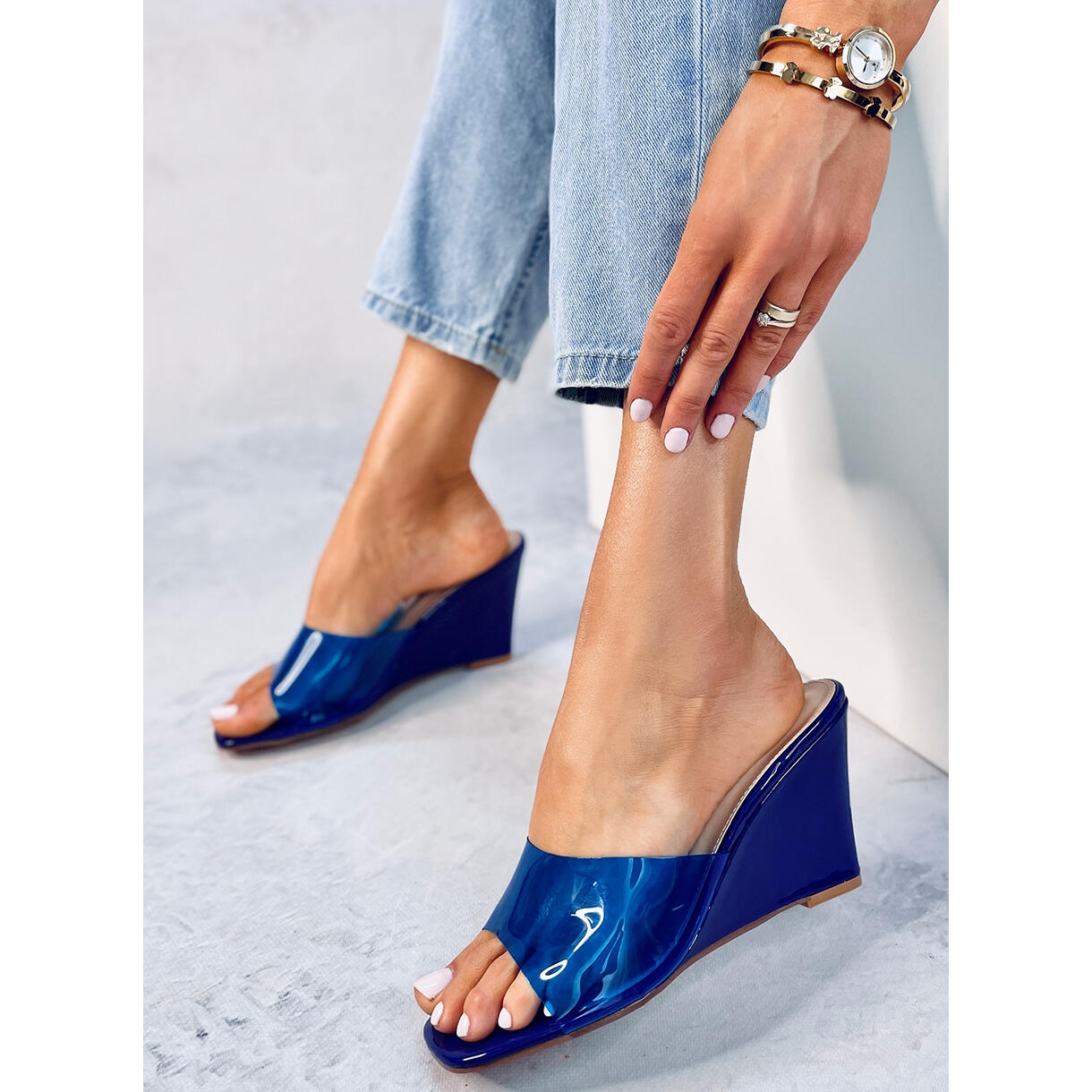 Acestea sunt sandale cu pană Rocks Blue transparente într-o nuanță frumoasă de albastru, care sunt alegerea perfectă pentru fiecare femeie la modă. Acești șlapi unici cu o înălțime de pană de 9 cm combină confortul cu eleganța, făcându-le perfecte atât pentru stilul de zi cu zi, cât și pentru ieșirile de vară.