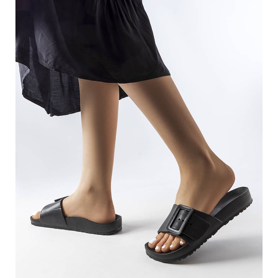 Nu așteptați și faceți-vă confortabil în zilele de vară cu șlapi de cauciuc negru cu cataramă Nelm!