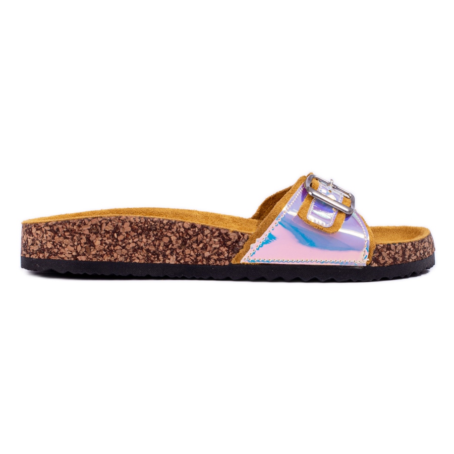 Dacă sunteți în căutarea unor șlapi unice, care combină moda cu confortul, alege șlapii de plută galbenă holografică Shelovet. Ambalajul lor original le va face și o idee grozavă de cadou!