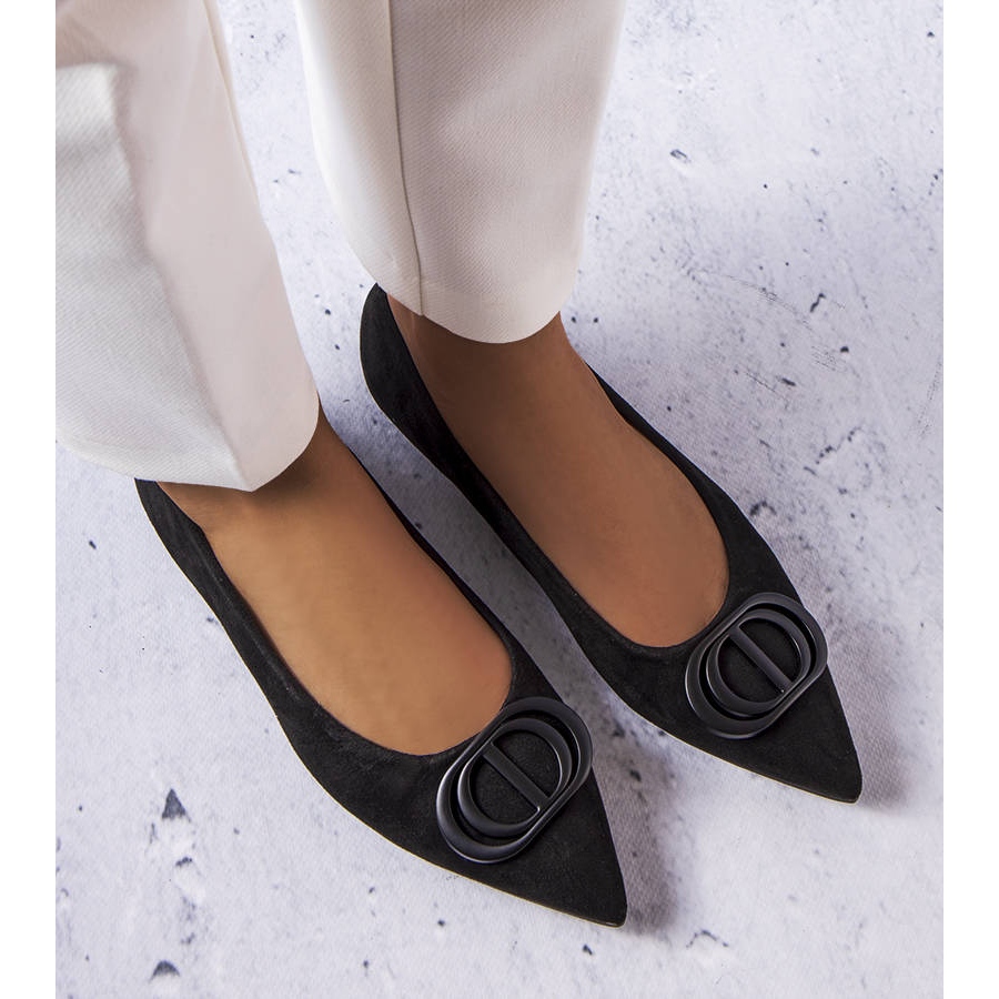 Va prezentam balerini eleganti negri din piele intoarsa ecologica Grignon - alegerea perfecta pentru fiecare femeie la moda care apreciaza imbinarea stilului clasic si minimalist. Acesti pantofi extrem de stilati, confectionati din piele ecologica sub forma de piele intoarsa, ofera nu doar un aspect unic, ci si confort atunci cand sunt purtati.