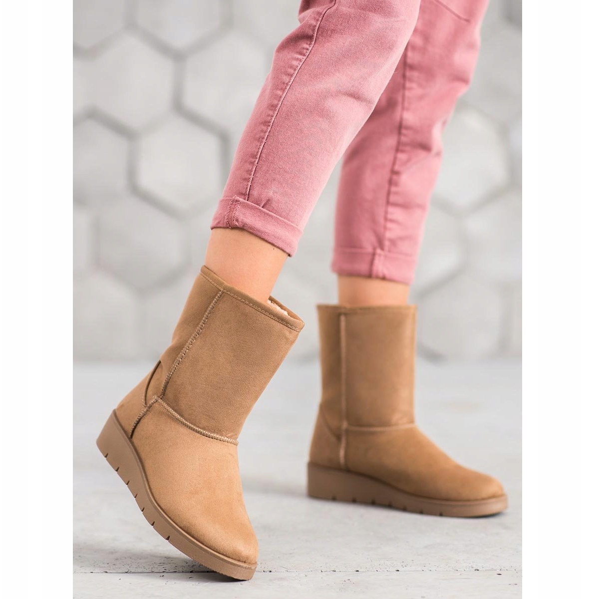 Mukluk-urile au o platformă înaltă de 2 cm care asigură o izolare adecvată față de sol, ceea ce le face nu numai la modă, ci și o alegere practică pentru ieșirile de zi cu zi. Căptușeala înaltă, care ajunge deasupra gleznei, nu numai că adaugă șic, ci și vă protejează picioarele de frig.