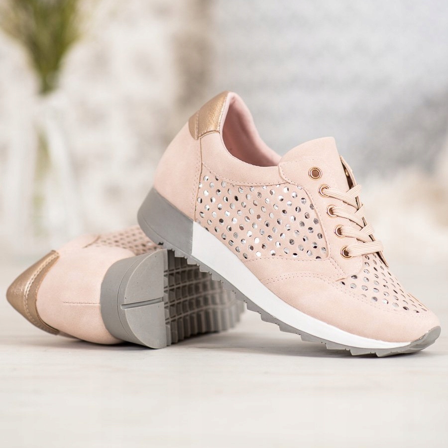 Descoperiți moda și confortul în același timp datorită pantofilor cu platformă ajurata ai Kylie într-o culoare fermecătoare roz deschis. Acești pantofi textile de damă sunt alegerea perfectă pentru primăvară și vară, combinând un stil casual cu un fler sportiv. Partea superioară ajurata, plină de găuri decorative, nu numai că atrage atenția, dar oferă și o ventilație excelentă - o opțiune ideală pentru zilele calde.
